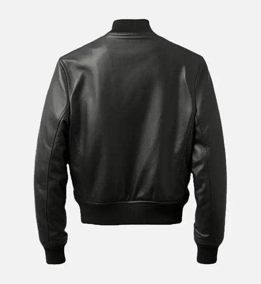 Black Bomber Leather Jacket for Men