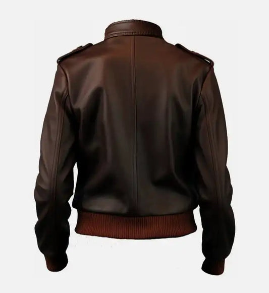 Brown Leather Bomber Jacket For Women