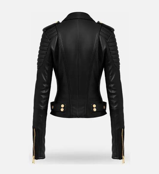 Black Biker Leather Jacket For Women