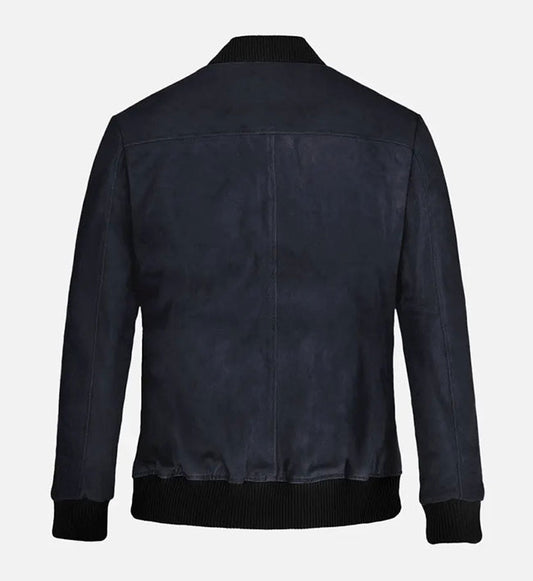 SaleMen's Dark Blue Suede Bomber Jacket