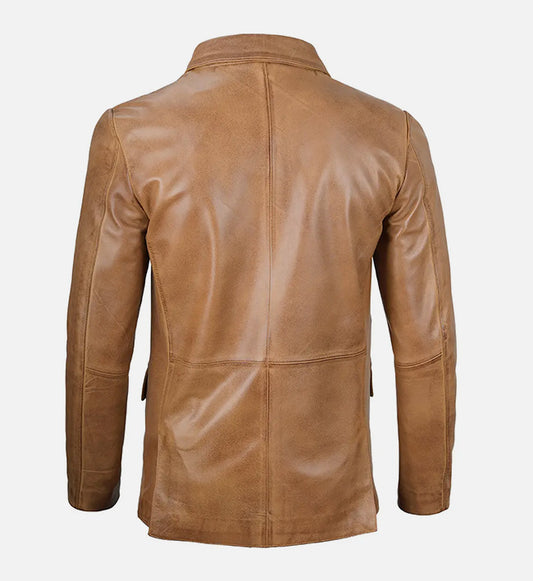 SaleMen's Camel Brown Leather Blazer Jacket