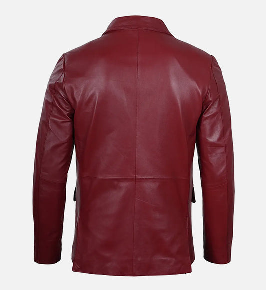 SaleMen's Maroon Leather Blazer Jacket