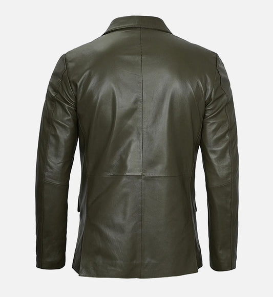 SaleMen's Dark Green Leather Blazer Jacket