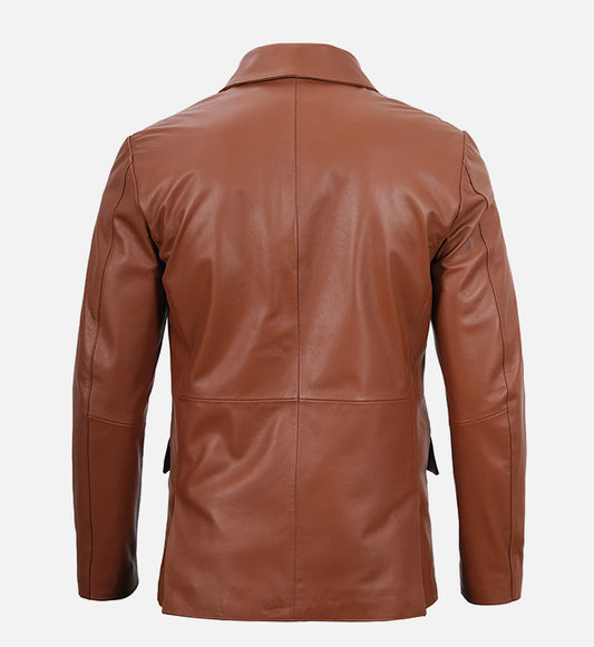 SaleMen's Cognac Brown Leather Blazer Jacket