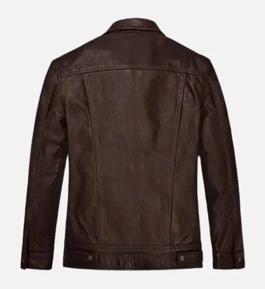 Men's Chocolate Brown Trucker Leather Jacket