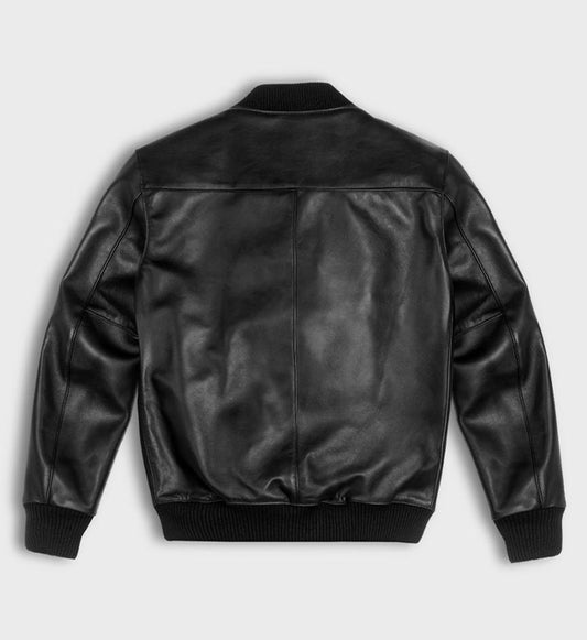 SaleMen's Black Beanu Leather Bomber Jacket