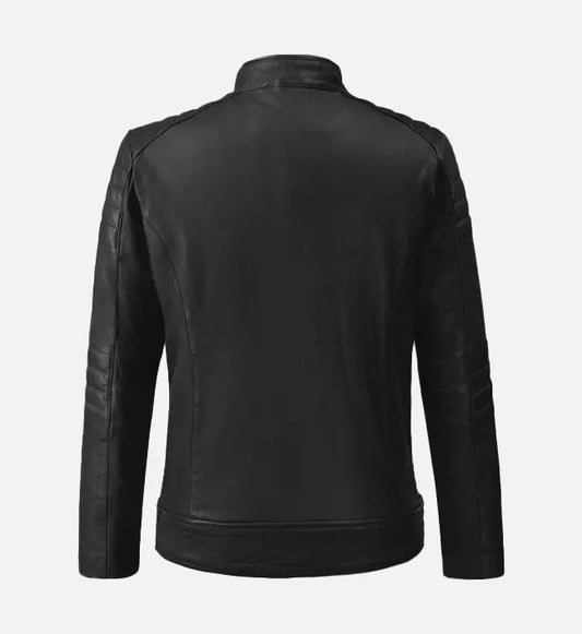 SaleMen’s Quilted Shoulder Black Cafe Racer Leather Jacket