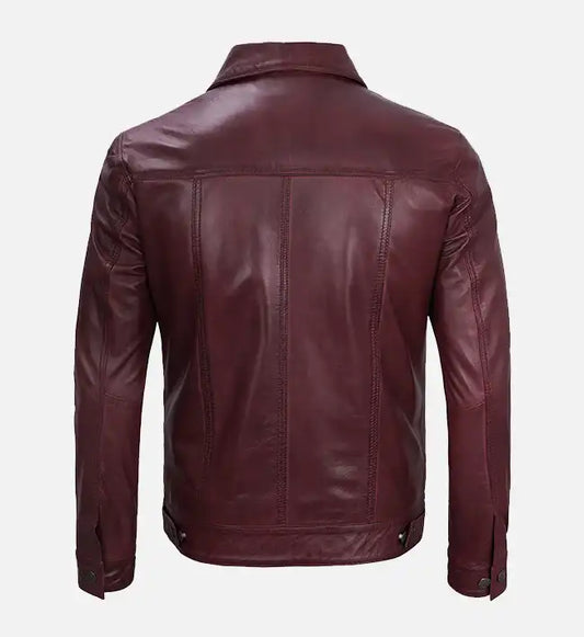 Men's Leather Maroon Trucker Jacket
