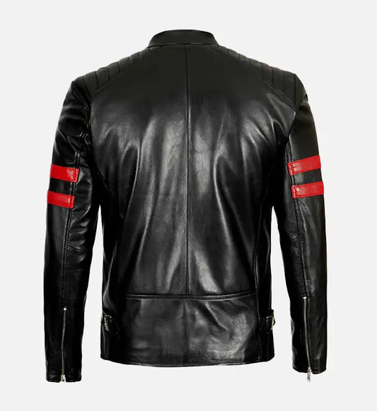 SaleMen’s Red Stripes Black Biker Jacket