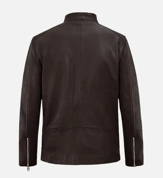 SaleMen’s Brown Leather Jacket with Zip Pocket
