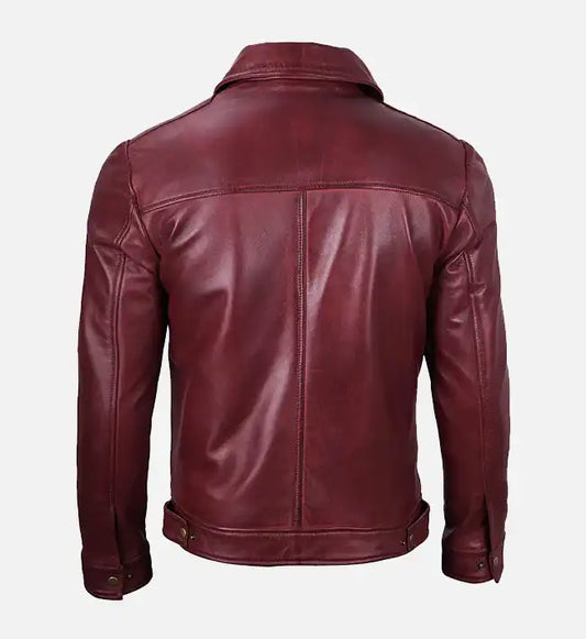 Men's Classic Shirt Collar Maroon Leather Jacket