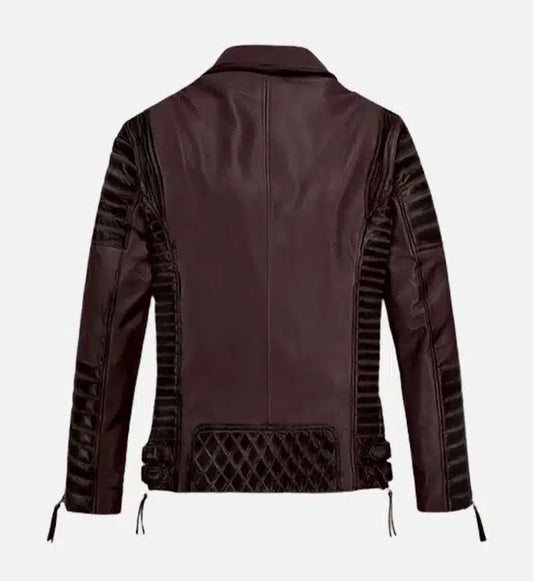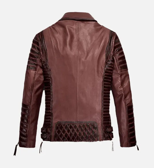 SaleMen's Quilted Cafe Racer Black & Maroon Leather Jacket