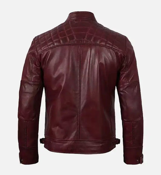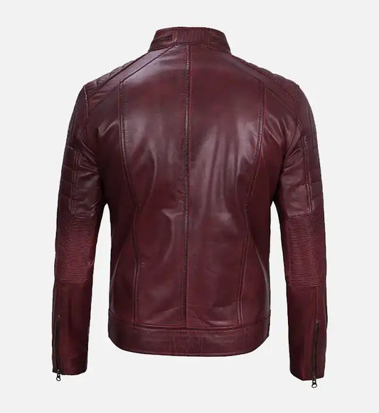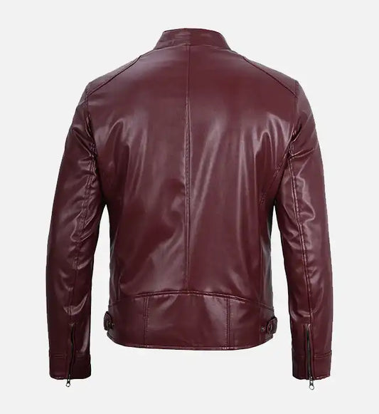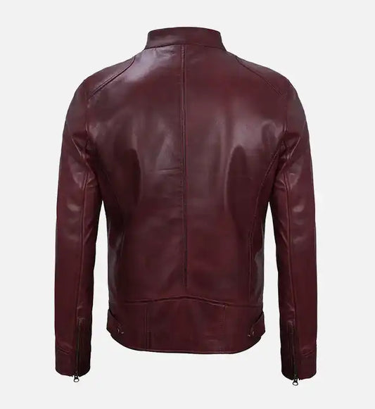 Men's Maroon Cafe Racer Premium Leather Jacket