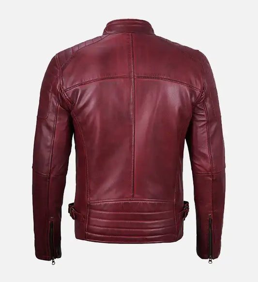 SaleMen's Maroon Waxed Cafe Racer Leather Jacket